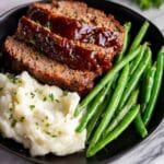 This easy meatloaf recipe combines ground beef with flavorful ingredients like grated onion, Worcestershire sauce, and garlic powder to create a moist and delicious classic comfort food. Topped with a sweet and tangy ketchup glaze, it’s baked to perfection in the oven and perfect for a hearty family dinner.