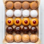 - Coat with powdered sugar: Allow the donut holes to fully cool, then toss them in powdered sugar. For easy coating, shake donut holes in powdered sugar inside a paper or ziplock bag.