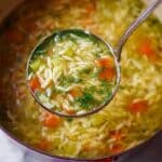 Store any leftover soup in an airtight container in the refrigerator for up to 4 days. The orzo will absorb some broth over time, so add a splash of vegetable broth or water when reheating to loosen the soup. Reheat gently on the stovetop over medium-low heat, stirring occasionally. You can also freeze the soup for up to 3 months in portioned containers; texture may change slightly after thawing.