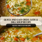 This Easy Orzo, Leek and Dill Soup is a light, refreshing, and satisfying vegetarian soup made with tender orzo pasta, mild leeks, fresh dill, and bright lemon juice. Perfect for a quick weeknight meal, it comes together in one pot using simple pantry ingredients and delivers a fresh, herbaceous flavor with a comforting texture.