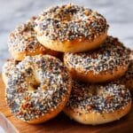These easy sourdough bagels are a fantastic way to use up your sourdough starter or discard. They deliver a chewy, flavorful bagel that’s so much better than store-bought and perfect for breakfast or any time of day.
