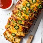 - Step 7: Transfer the meatloaf to a cutting board and slice into 12 pieces. Serve with additional enchilada sauce on the side if you like.