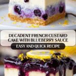French Custard Cake is a delicate dessert featuring a creamy custard nestled on a crisp Biscoff cookie crust. Paired with fresh blueberries and a tangy lemon mascarpone buttercream, this cake offers a perfect balance of textures and flavors that’s sure to impress your guests.