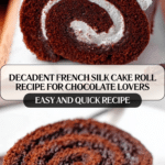 This French Silk Cake Roll is a decadent chocolate dessert featuring a light, fluffy chocolate sponge cake rolled with a rich French silk chocolate filling and topped with airy whipped cream and chocolate shavings. Perfect for special occasions or an elegant treat, this recipe combines the smoothness of silky chocolate with the delicate texture of a rolled sponge cake.