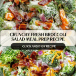 This Fresh Broccoli Salad Meal Prep recipe is a crunchy, vibrant, and protein-rich salad perfect for easy weekday lunches. Featuring bite-sized broccoli florets, crisp bacon, sharp cheddar, and a creamy tangy dressing made from Greek yogurt and mayonnaise, this salad stays fresh and flavorful for up to five days. It’s simple to prepare in under 35 minutes, customizable to your taste, and ideal for meal prepping to enjoy fresh, healthy meals all week long.