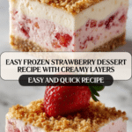 This easy frozen strawberry dessert is perfect for warm days when you want a refreshing treat. Creamy, fruity, and crunchy all in one, it comes together quickly and serves a crowd. You’ll love this no-bake dessert that combines sweet strawberries with a buttery graham cracker base.