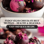 These fudgy vegan chocolate beet truffles combine the natural sweetness and moist texture of cooked beets with Medjool dates and rich raw cacao powder to create a healthy, plant-based treat. Coated in dairy-free dark chocolate, these truffles are perfect for guilt-free indulgence with a deep chocolate flavor and a subtle earthy undertone from the beets. They require no baking, making them quick to assemble and ideal for a nutritious snack or dessert.