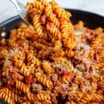 Store any leftover Fusilli Bolognese in an airtight container in the refrigerator for up to 3 days. Reheat gently on the stove or in the microwave, adding a splash of water or extra pasta water to loosen the sauce if needed.