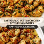 Garlic Butter Chicken Bites are a quick and flavorful dish perfect for busy weeknights. Tender chicken pieces are cooked in a rich garlic butter sauce, creating a deliciously satisfying meal ready in just 20 minutes.
