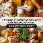 This Garlic Parmesan Crockpot Chicken and Potatoes recipe is a simple, flavorful meal perfect for busy days. Tender chicken breasts and baby potatoes cook slowly with garlic, parmesan, and Italian seasoning, making a comforting and satisfying dish with minimal effort.