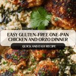 This Gluten-free One-Pan Chicken and Orzo recipe is a creamy, hearty, and comforting meal perfect for weeknight dinners. It features crispy, juicy skillet-seared chicken thighs baked together with grain-free orzo and spinach, making it dairy-free, paleo, and AIP-friendly. The blend of herbs and a touch of lemon adds bright, fresh flavors to this one-pot dish.