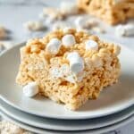 This Rice Krispie Treats Recipe uses double the marshmallows for an extra gooey and buttery treat! Made with just four ingredients, this easy no-bake dessert is ready in ten minutes and requires only one pot. Perfectly crispy, sweet, and chewy—these treats are ideal for snacking or parties.