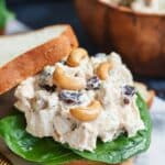 This Greek Yogurt Chicken Salad is a healthy, high-protein, low-calorie take on a classic chicken salad. Featuring non-fat Greek yogurt, tangy Dijon mustard, crunchy roasted cashews, chewy craisins, and flavorful spices, it makes for a quick and easy lunch that’s both satisfying and nutritious.