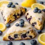 Keywords: lemon blueberry scones, healthy scones recipe, yogurt scones, blueberry baking, lemon zest, Greek yogurt scones, healthy snack, nutritious scones, low fat baking, antioxidant rich desserts