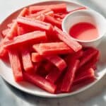 Watermelon fries are best enjoyed fresh for maximum crispness and flavor. If storing, place them in an airtight container in the refrigerator and consume within 1 day. Reheating is not recommended as the texture will soften.
