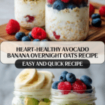 Start your day with this heart-healthy avocado and banana overnight oats. Packed with fresh fruits and wholesome oats, it’s a nourishing, easy breakfast that requires no cooking and is ready when you wake up.