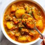 Store leftover stew in an airtight container in the refrigerator for up to 3 days. Reheat gently on the stovetop or in the microwave until warmed through. This stew also freezes well for up to 3 months; thaw overnight in the fridge before reheating.