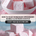 Keywords: homemade bubble gum, strawberry bubble gum, DIY candy, gum base recipe, microwaved bubble gum