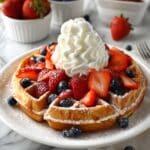 This Homemade Waffles recipe is a quick and easy way to create light, fluffy, and golden-brown waffles perfect for breakfast or brunch. Made from simple pantry staples, these waffles have a crispy exterior and a soft, tender inside, flavored with vanilla and served best warm with your favorite toppings.