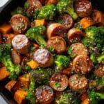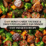 This Honey Garlic Sausage and Sweet Potato Sheet Pan Dinner is a quick, easy, and flavorful one-pan meal combining smoky pre-cooked sausage, tender sweet potatoes, and crisp broccoli, all glazed in a sticky honey garlic sauce. Perfect for busy weeknights, it offers minimal cleanup while delivering a balanced and nutritious dish with a delightful caramelized finish.