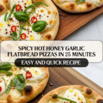 These Hot Honey Garlic Flatbread Pizzas combine a perfect balance of spicy, sweet, and savory flavors in a quick and easy meal. Ready in just 25 minutes, they’re ideal for a flavorful weeknight dinner or a casual snack. The melty cheeses paired with a fragrant garlic drizzle and a kick of hot honey create an irresistible treat.
