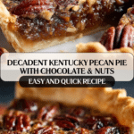 A rich and decadent Kentucky Pecan Pie featuring a buttery 9-inch pie crust filled with toasted pecans, mixed nuts, and semisweet chocolate chips. Sweetened with dark corn syrup and brown sugar, this pie combines nutty flavors and luscious chocolate in a classic Southern dessert perfect for any occasion.