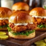 Store any leftover fried chicken in an airtight container in the refrigerator for up to 2 days. Reheat in an oven or air fryer at 350°F (175°C) for 10 minutes to help retain crispiness. Avoid microwaving if possible, as it can make the crust soggy. Assemble the burgers fresh to keep buns from becoming soggy.