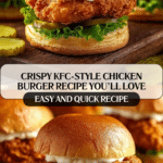 This KFC-Style Original Crispy Chicken Burger recipe delivers juicy, tender chicken thighs marinated in buttermilk and hot sauce, coated in a seasoned flour dredge, and shallow-fried to crispy perfection. Served on lightly toasted brioche buns with mayonnaise, dill pickles, and shredded iceberg lettuce, this burger replicates the iconic flavors and crunch of a classic fried chicken sandwich in your own kitchen.