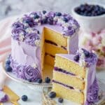 Keywords: lavender cake, lavender buttercream, floral cake, lavender simple syrup, moist cake, American dessert, floral dessert, elegant cake recipe