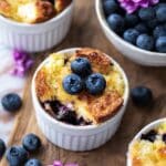 - Add Custard: Pour half of the custard mixture over the bread and blueberries in the ramekins.