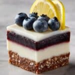 This Lemon Blueberry Shortbread Mousse Cake is a delightful no-bake dessert featuring a buttery shortbread crust layered with a light and creamy lemon mousse, topped with a fresh blueberry compote. The combination of tart lemon and sweet blueberries creates a refreshing and elegant treat perfect for any occasion.