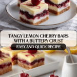 Bright, tangy, and sweet, these Lemon Cherry Bars are a perfect treat for any time of day. Combining zesty lemon with luscious cherry preserves, they offer a delightful burst of flavor in every bite.