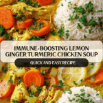 This Lemon Ginger Turmeric Chicken and Rice Soup is a bright and comforting dish perfect for chilly days or when you need a nourishing meal. The zesty lemon and warm turmeric flavors combine beautifully with tender chicken and wholesome vegetables. It’s easy to make and satisfying for the whole family.
