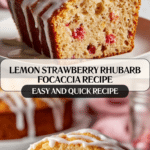 This Lemon Strawberry Rhubarb Focaccia is a delightful twist on classic Italian bread, incorporating the bright flavors of fresh strawberries and tart rhubarb. The focaccia has a sweet-tart topping complemented by a tender, fluffy bread base, enhanced with lemon juice and a buttery crumb topping. Perfect for brunch, dessert, or a special snack, this recipe balances fruity freshness with the rich texture of focaccia bread.