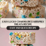 Lucky Charms Rice Krispies Treats bring a fun and colorful twist to the classic marshmallow cereal treat. Combining crunchy rice cereal with the playful flavors of Lucky Charms makes for a sweet snack that’s perfect for parties or an everyday treat.