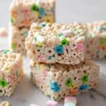 Keywords: Lucky Charms, Rice Krispies Treats, marshmallow treats, sweet snack, easy dessert, no bake, kid-friendly, colorful cereal bars