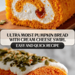 This Make-Ahead Ultra Moist Pumpkin Bread with Cream Cheese Swirl is a deliciously tender, spiced pumpkin loaf featuring a creamy cream cheese swirl throughout. Perfect for fall or any time you crave a moist, flavorful treat, this bread combines classic pumpkin spices with a luscious cream cheese layer for added richness. It’s easy to make ahead and ideal for breakfast, snack, or dessert.