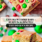 Delightful and easy-to-make M&M Cookie Bars featuring a classic vanilla cake mix base combined with colorful red and green M&M’s, baked to golden perfection. These bars are perfect for holiday treats, parties, or whenever you crave a sweet and festive dessert.