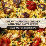Marry Me Chicken Orzo is a creamy, flavorful one-pan dish that’s perfect for a cozy weeknight dinner. Tender chicken breasts simmered in a rich sauce with sun-dried tomatoes and orzo pasta make every bite irresistibly delicious.