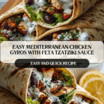 Keywords: Mediterranean chicken gyros, feta tzatziki, Greek yogurt sauce, easy chicken gyros recipe, skillet chicken gyros, pita sandwich, healthy Mediterranean meal