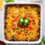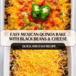 A flavorful and hearty Mexican Quinoa Bake combining protein-packed quinoa, black beans, vibrant vegetables, and melted cheddar cheese, perfect for a nutritious and satisfying meal.