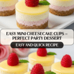 Mini Cheesecake Cups are a delightful and portable dessert that’s perfect for parties or gatherings. With a buttery cookie crust and smooth, creamy filling, these bite-sized treats are sure to impress your guests.