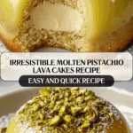 Molten Pistachio Lava Cakes offer a delightful twist on the classic lava cake, combining creamy white chocolate and rich pistachio flavors. These individual cakes have a gooey center that will impress any guest and make for a perfect elegant dessert.