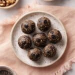 Store the nut date balls in an airtight container in the refrigerator for up to one week. They can also be frozen for up to one month; just thaw in the fridge before enjoying. No reheating is needed—these energy balls are perfect as a grab-and-go snack.
