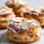Paris-Brest is a classic French dessert featuring a crisp, airy choux pastry ring filled with a rich almond cream. This dessert combines the light texture of pâte à choux with a luscious, vanilla-infused pastry cream whipped with butter and almond butter, topped with toasted sliced almonds and a dusting of powdered sugar for an elegant finish.