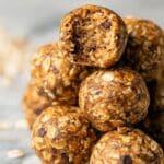 Chewy no-bake Peanut Butter Energy Balls are a delicious and nutritious snack made with just five simple ingredients. Combining rolled oats, creamy peanut butter, mini chocolate chips, ground flaxseed, and honey, these energy balls offer a perfect balance of protein, healthy fats, and natural sweetness. They are quick to prepare, require no baking, and make an ideal grab-and-go snack or breakfast on-the-fly. With a cookie dough-like taste and texture, they keep well in the fridge and freezer, making them perfect for meal prep and satisfying your sweet tooth while boosting your energy.
