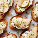 Keywords: pear crostini, burrata appetizer, easy Italian appetizer, baked crostini, party snacks