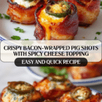 Pig Shots are a fun and flavorful appetizer perfect for gatherings and game days. Juicy smoked sausage wrapped in crispy bacon, topped with a creamy, spicy cheese mixture and a sweet BBQ glaze makes every bite irresistible.