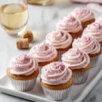 Keywords: Pink Champagne Cupcakes, champagne cupcakes recipe, champagne buttercream frosting, celebratory cupcakes, Valentine’s Day cupcakes, moist pink cupcakes, champagne dessert