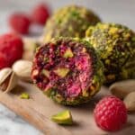 Raspberry Pistachio Bliss Balls are a delicious, nutritious no-bake snack featuring a perfect blend of tart dried raspberries and crunchy pistachios. Sweetened naturally with honey and bound with coconut oil, these bliss balls offer a wholesome treat that’s easy to make, customizable, and ideal for on-the-go snacking or a wholesome dessert.